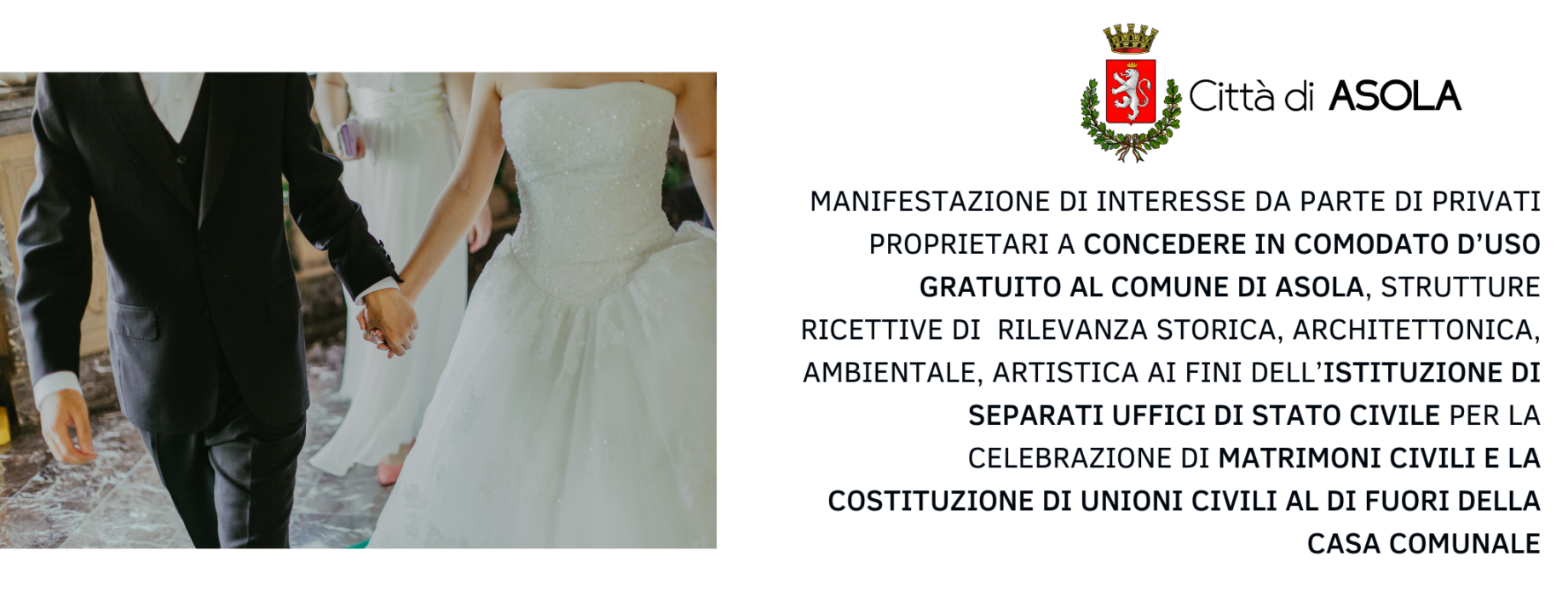 Avviso uffici separati di stato civile per matrimoni e unioni civili